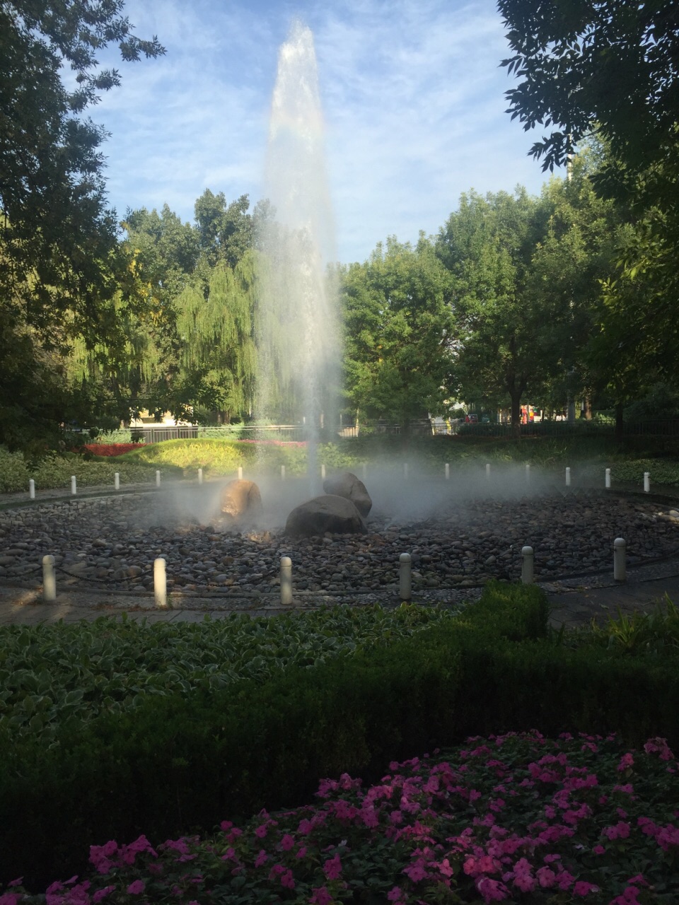 网友2017-09-30雾泉位于朝阳公园西边,是一个喷泉,在阳光明媚的时候,由于雾泉喷出的大多数为雾状,所以很容易就能...雾泉位于朝阳公园西边,是一个喷泉,在阳光明媚的时候,由于雾泉喷出的大多数为雾状,所以很容易就能够看到彩虹,很漂亮。每天喷泉时间是固定的,下午四点之后就基本上不喷了,所以要去一定要注意时间。