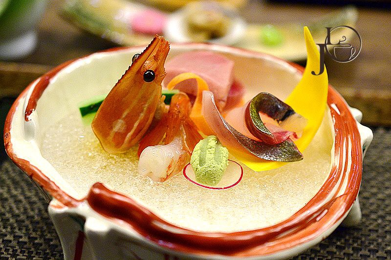空蝉~~感觉就是让人放空一切、愉悦身心的地方,是享受美食的地方~ 上了外滩源的3楼,远远的便见到穿着和服的小姑娘,笑的甜甜的~ 循小道缓缓进入餐厅,一路只见各种的精致,仿佛走进了日本的民居庭院, 餐厅一共只服务4间包房,分别以春、夏、秋、冬命名,每间都很私密雅致, 怀石料理是按顺序上菜的,分为先附、前菜、小钵、刺身、蒸物、煮物、烤物、主食、炸物、水果,一道道都很精致诱惑,每上一道菜都会有个穿着和服的MM在你耳边轻声介绍菜品的食材和制作,不能不惊叹料理长的精湛技艺啊~ 先附:抹茶金枪鱼 金枪鱼是半生熟的,应该是火炙过的吧,这种半生熟的鱼生我最喜欢来,比较嫩,配上那一坨抹茶酱和蔬菜丝一起细细嚼口感更好。 小钵:三文鱼配温泉蛋 三文鱼类似烟熏过的,温泉蛋也是半生熟的,类似厚厚的蛋黄酱,破开后以蛋黄酱的滑润配上鱼籽酱的鲜美拌三文鱼一起吃,滋味很好。 前菜:蛤蜊南蛮汁、蚕豆、樱花山药 只有怀石料理才会有那么精致的前菜,中间的蛤蜊很新鲜肉质饱满,用它家特有的南蛮汁调的味口感很好,配的蚕豆长得好可爱啊~晶莹剔透通体碧绿,还是很香酥甜蜜的口感。樱花山药做成漂亮的樱花状,粉粉嫩嫩,口感类似糯米山药哎~ 刺身:金枪鱼、牡丹虾、大竹夹鱼 从北海道空运来的新鲜刺身,配现磨的新鲜芥末,嗲!最喜欢金枪鱼这种肥腻腻嫩嫩的口感了。牡丹虾肉质细腻微微带甜品质超级好啊,喜欢。 炸物:虾酱糕 很清淡的炸物,沾点配的醋料很是鲜嫩好吃,感觉里面弹弹的虾肉好多噢~ 蒸物:茶碗蒸蛋 很细嫩的蒸蛋,里面有虾仁、帝王蟹肉、樱花酥等,很鲜的。 酥物:时蔬拌帝王蟹 这个里面的货色很多哎~有阿拉斯加帝王蟹肉、萝卜、青瓜,还有漂亮又可爱的三文鱼籽啊,一咬就啪啪的,把这些美味合在一起吃绝对锦上添花啦~ 煮物:百合煮物 磨的很细腻的百合泥内里包着味曾鸡肉一起炖煮,煮的外面的百合泥糯糯的,合着里面鲜嫩的馅料好好吃呢~ 烤物:盐烤和牛配时令蔬菜 哇,肥嘟嘟的肥牛我的最爱啊~这么好吃的肉肉啊~太幸福啦,刚刚好的5分熟把那个汁水完全锁在了里面,一口塞嘴里的感觉爽极啦哈哈。 主食:春笋饭、味增汤、酱菜 春笋削成很细小的颗粒,居然能跟米饭完全融合噢,赞。主食搭配的酱菜是青瓜、紫苏和萝卜,味道不错 水果:日本进口哈密瓜 是日本进口来的,熟透了的蜜瓜超级甜蜜。 这一餐在回味中完美收场,好幸福呢,不知不觉已经好饱,这怀石料理的魅力,回味~无穷~