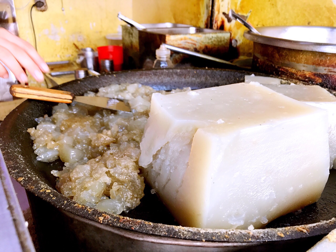 早就写过老姬的怎么就没有了呢!? 一直喜欢他家焖子,不管人多少,光头老姬都会不紧不慢的把焖子煎好,保证出疙,自己配的料汁也够味,还有豆腐串炸肠神马的但是我没吃过,每次就是一碗焖子^_^ 店铺在如意街拐角处,长兴市场对面,挺小挺破的;流动推车一般在鸣记烤鱼门前^_^