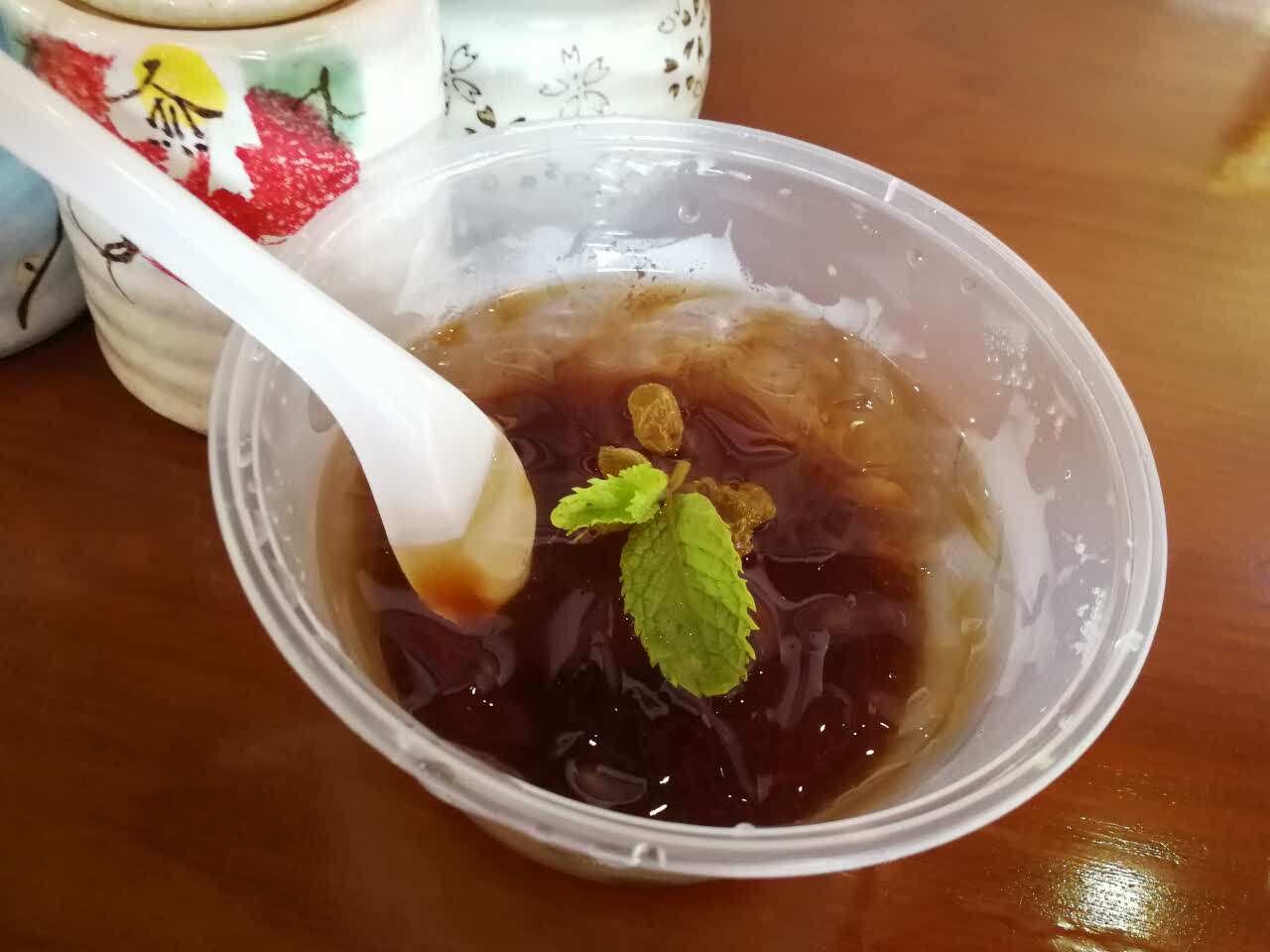 最爱的木莲冻,加了葡萄干和薄荷叶,萌萌哒的凉丝丝的甜津津的。有虾有肉有甜丝丝的玉米粒一本满足肠粉吸溜一下就搞定了。有虾有肉有甜丝丝的玉米粒一本满足。_(•̀ω•́ 」∠)_没有很饱刚刚好。最爱的木莲冻,加了葡萄干和薄荷叶,萌萌哒的凉丝丝的甜津津的。