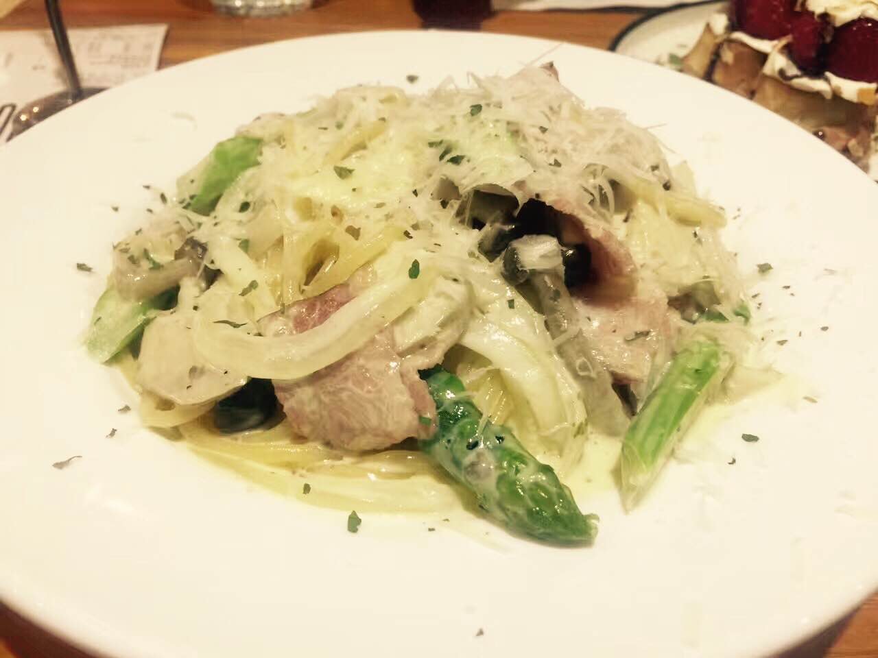 个人口味不是很喜欢优格杯,还不如喝杯卡士。。华夫饼甜到,草莓酸到,店员早就提醒现在草莓不当季会酸,还是点了,后悔!意粉是最好吃的,虽然还是有些腻,但是解救了我,意粉味道还是不错的,每样出品都是精致的……有点阴影,应该很长时间不会点华夫饼这种东东了。。