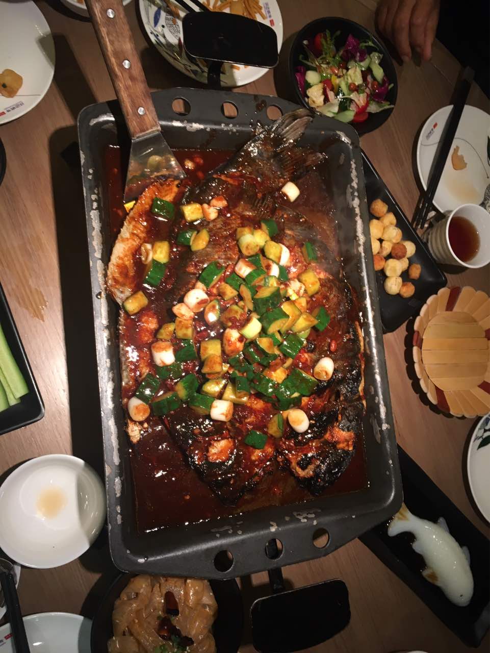 带家人第四去了,有4次都是点的酱香味的,超级推荐,一点不油腻鱼还比较入味,小吃也不错,价格实惠,环境也不错,总之适合家人朋友聚餐! 唯一不足就是每次都得早早去,否则排队人多,要能够提供线上订座就更好了!