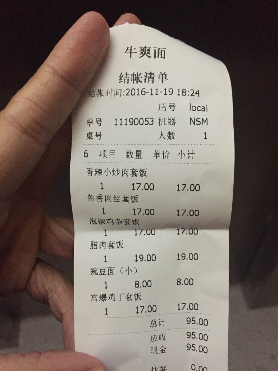 加班的食物,五份饭一份面。打包到公司吃。周末晚上营业的店不多,选择余地不大。