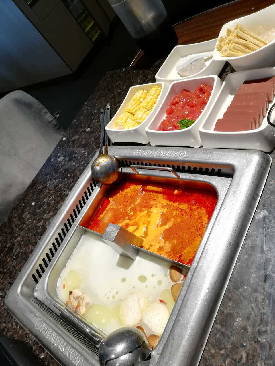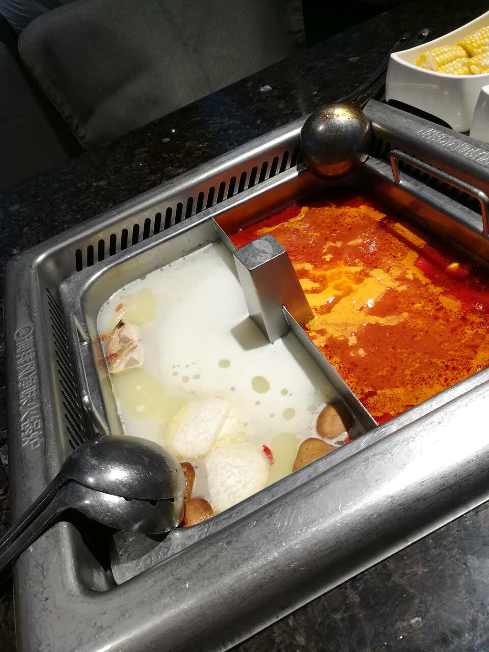 下午去 不用怎么排队 最爱番茄汤底 虾滑超好吃超好吃!!!每次都点 还有最爱的山药腐竹玉米,好点了个儿童套餐嘻嘻嘻