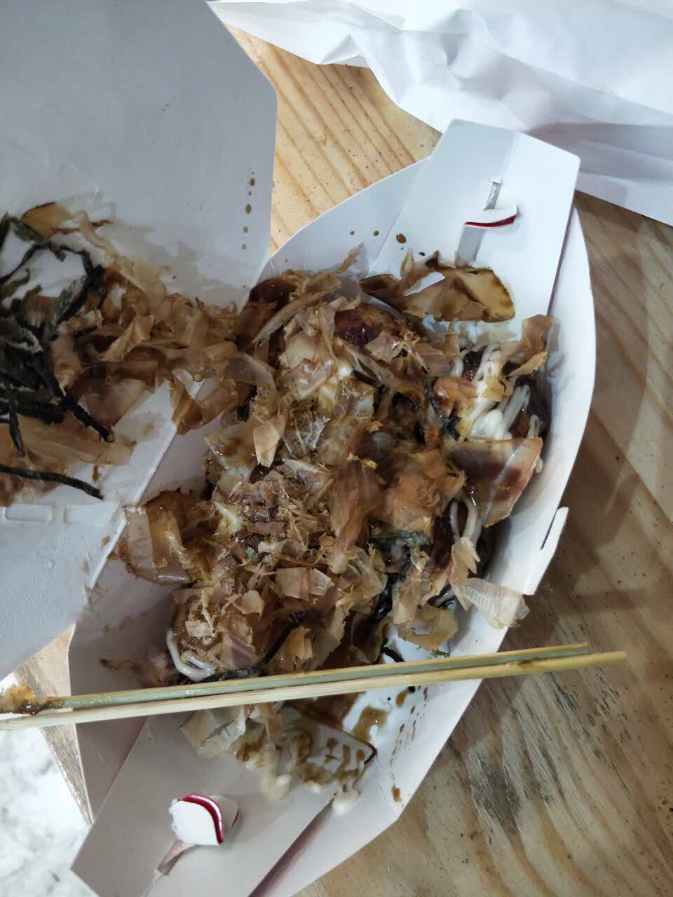 小孩要的原味章鱼烧,只吃了一个就不吃了,不如海亮地下那家好吃!