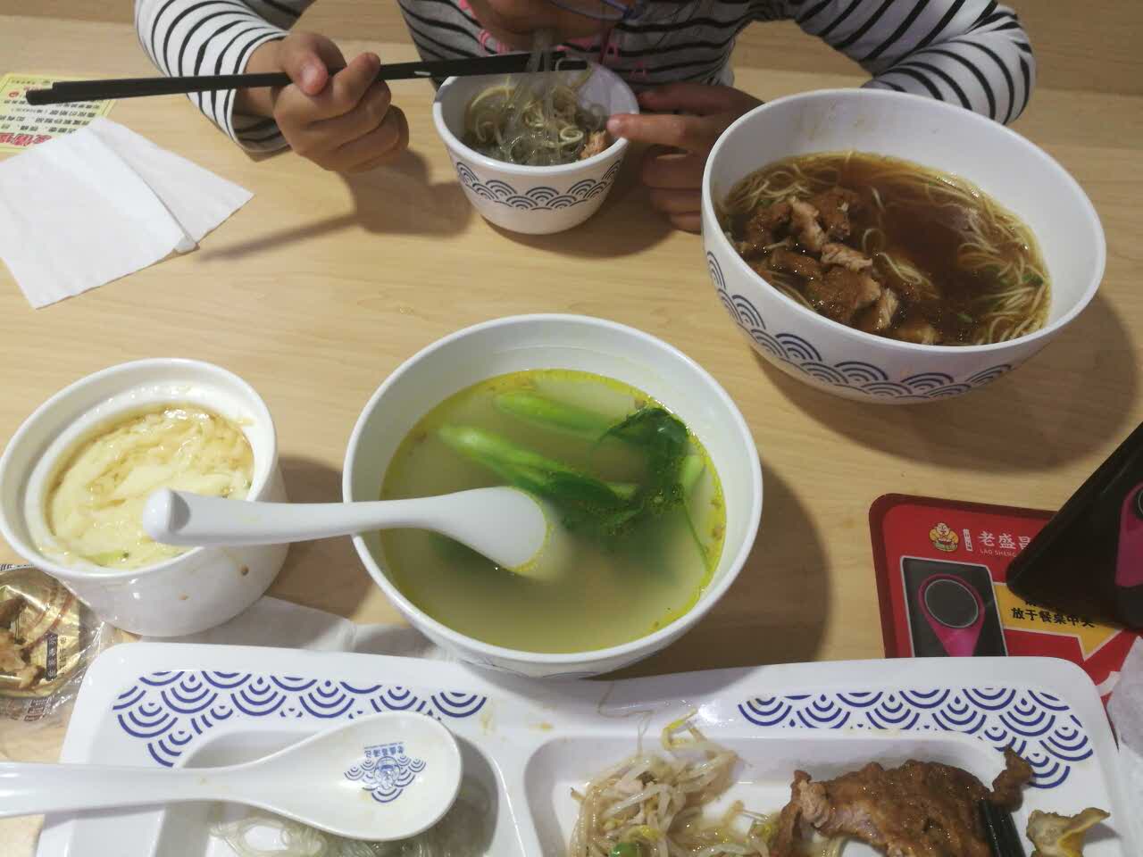 后院食堂,吃了才想起拍照首次尝试饭类套餐,饭是真多,素菜少了点。小家伙每次必点的大排面,牛肉粉丝汤,汤包
