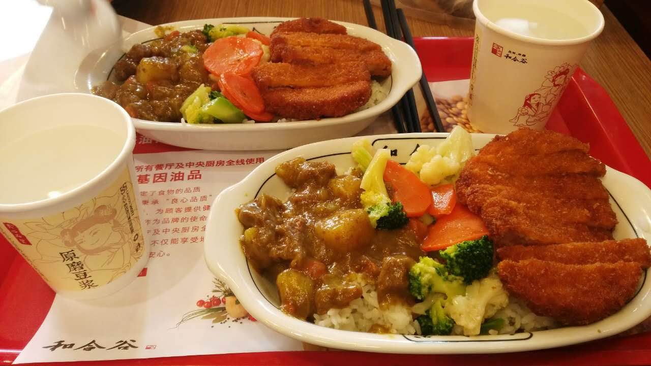 和合谷咖喱猪排饭很好吃啊 大大一块猪排 配牛肉咖喱西兰花 量好大一份