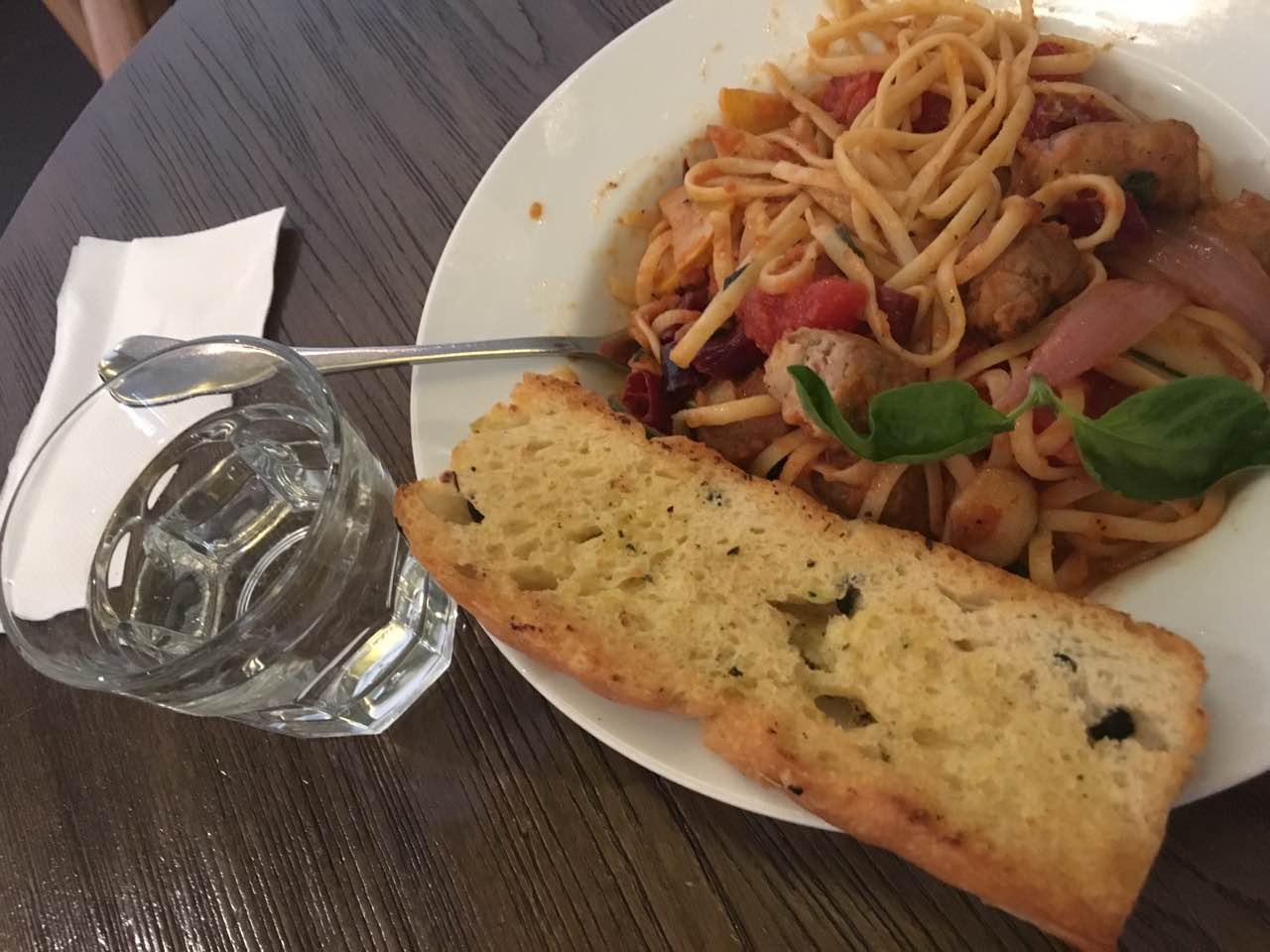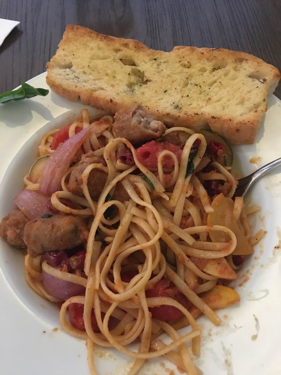 窄面条配辣鲜茄汁猪肉肠,味道不错,推荐。