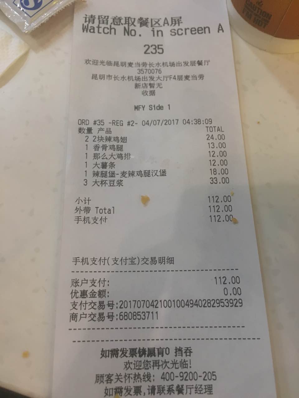 查看更多麦当劳(昆明长水国际机场餐厅)点评 >