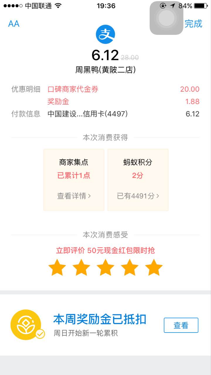 活动力度很大,消费20抵10,然后鼓励金低了一块多,真是太划算了