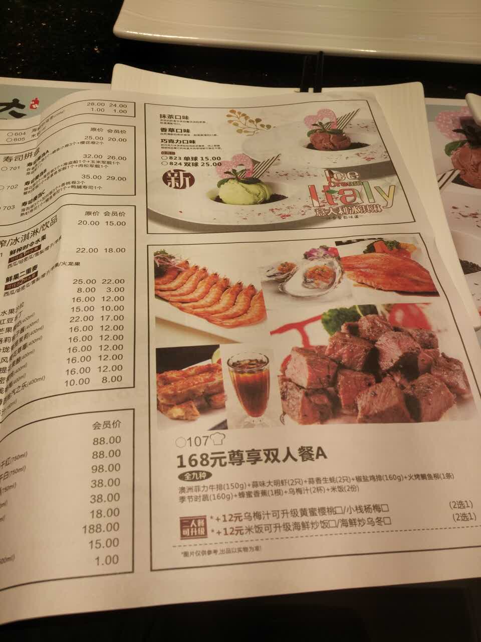 网友2017-05-18...牛排很嫩,鸡排味道也不错,套餐里面的时蔬就是炒豆芽,觉得太单调了,两只虾子倒是很大,不过没入味两个人点的168的套餐,环境还可以,牛排很嫩,鸡排味道也不错,套餐里面的时蔬就是炒豆芽,觉得太单调了,两只虾子倒是很大,不过没入味。