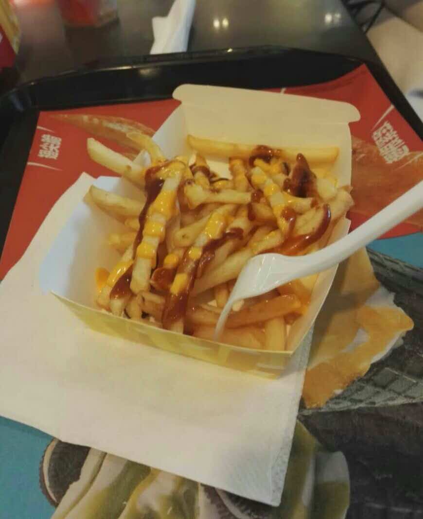 好吃!看起来就挺好吃的样子,刚炸出来的薯条外皮脆脆的,上面淋的应该是番茄酱和芝士酱,还蛮好吃好吃!去二七万达,顺便就吃了一元钱的薯条就酱~周六的原因,小排队。看起来就挺好吃的样子,刚炸出来的薯条外皮脆脆的,上面淋的应该是番茄酱和芝士酱,还蛮好吃~除了有点咸,别的没毛病