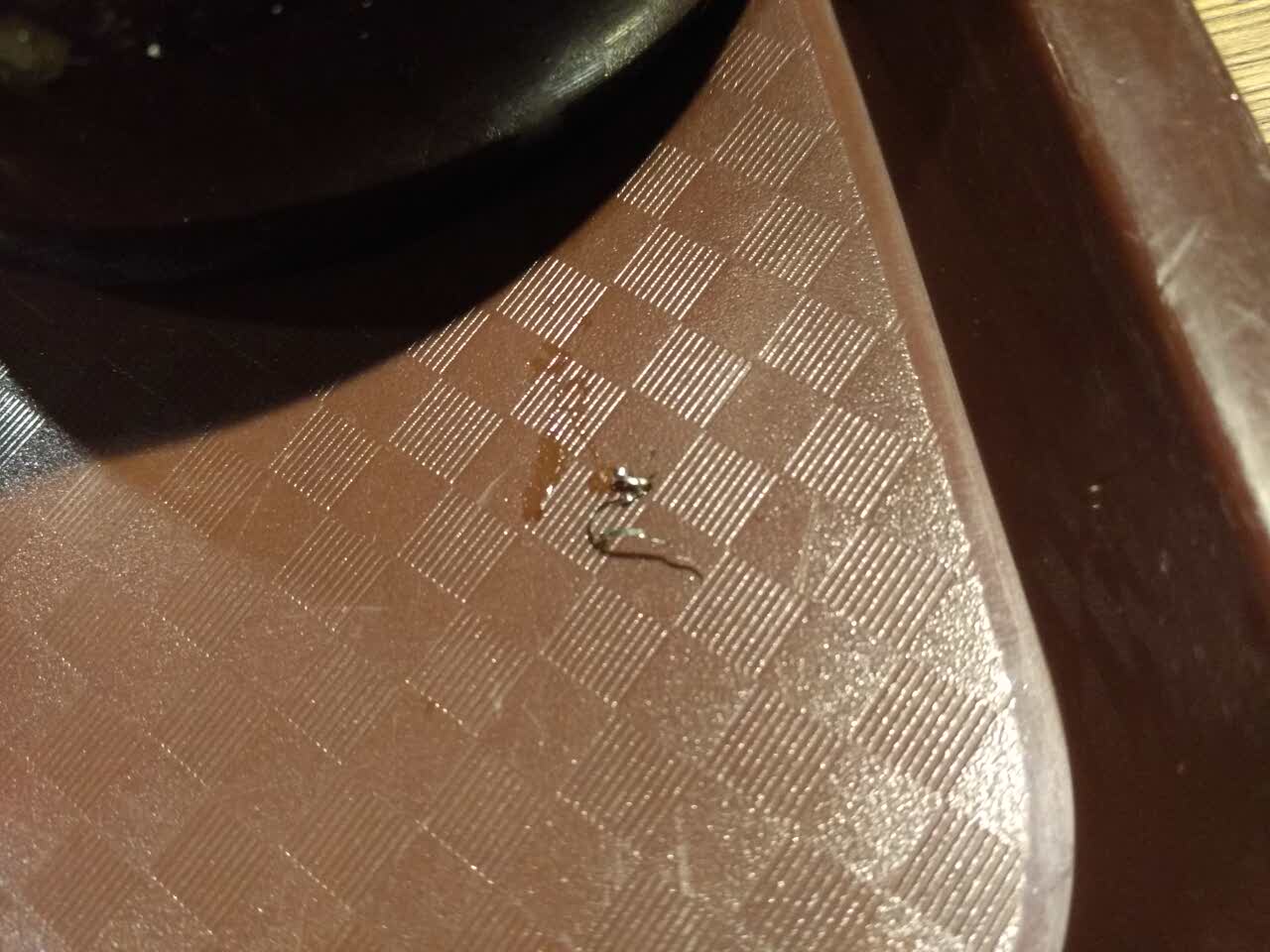 吃出了一根钢丝,挑出来,再默默地吃完。