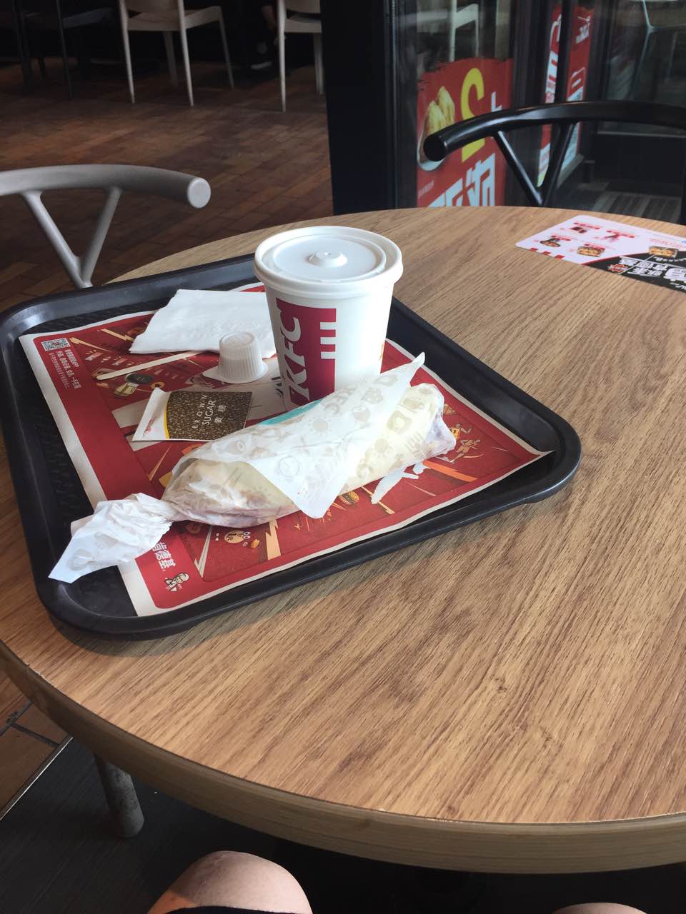 早饭吃一个被蛋卷是极好的!咖啡提神醒脑,来晚了都没得卖了