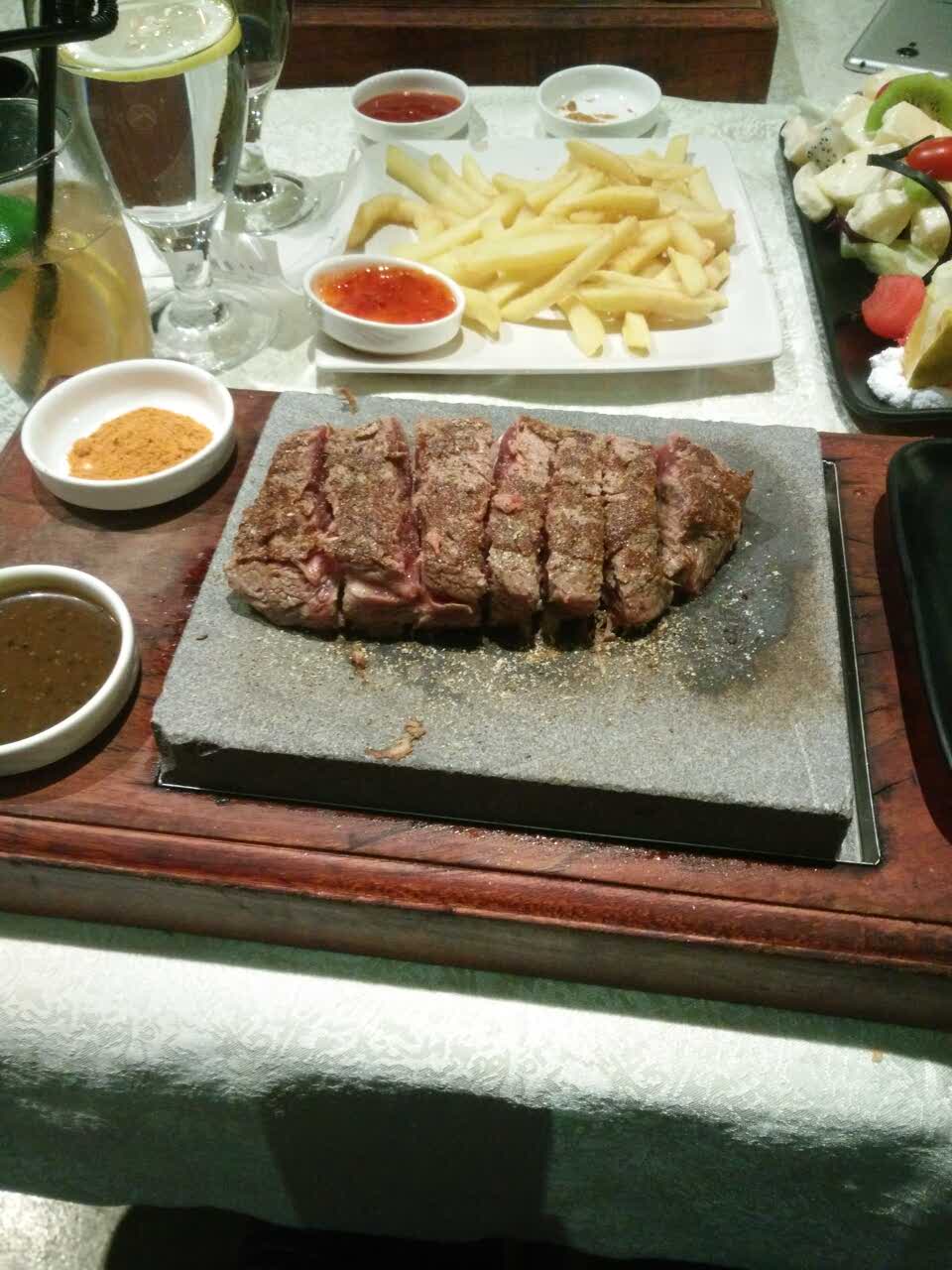 是一家非常有特色的牛排,进店后服务很热情,点完牛排后会有服务员把新鲜的牛排和滚烫石板抬到你的面前现烤,不用担心卫生问题,吃着很放心,烤完之后会把你把牛排切好,你需要做的就是……吃!(味道没得说good)总之个人感觉棒棒哒,有时间会带朋友过来一起体验。建议喜欢吃牛排的朋友,都可以去尝试一下。