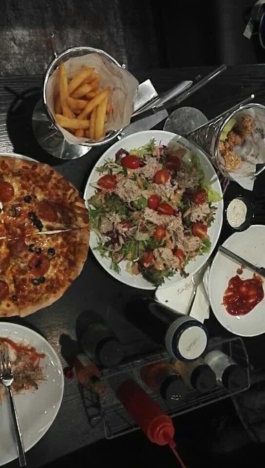 环境服务都不错,披萨味道很好吃,鸡翅和金枪鱼沙拉也很美味