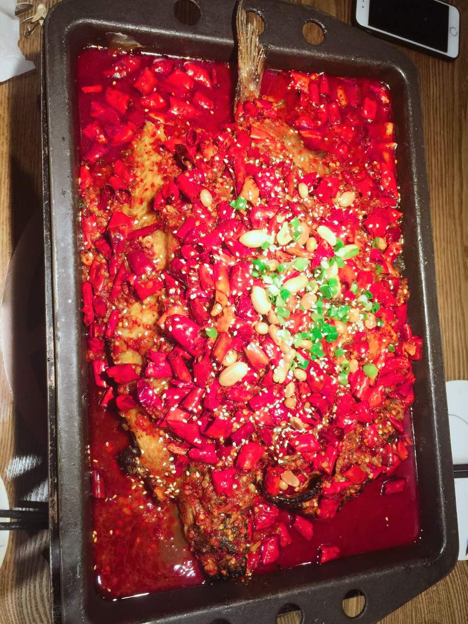 香辣清江鱼,味道超赞,辣辣辣!脆皮香蕉也不错