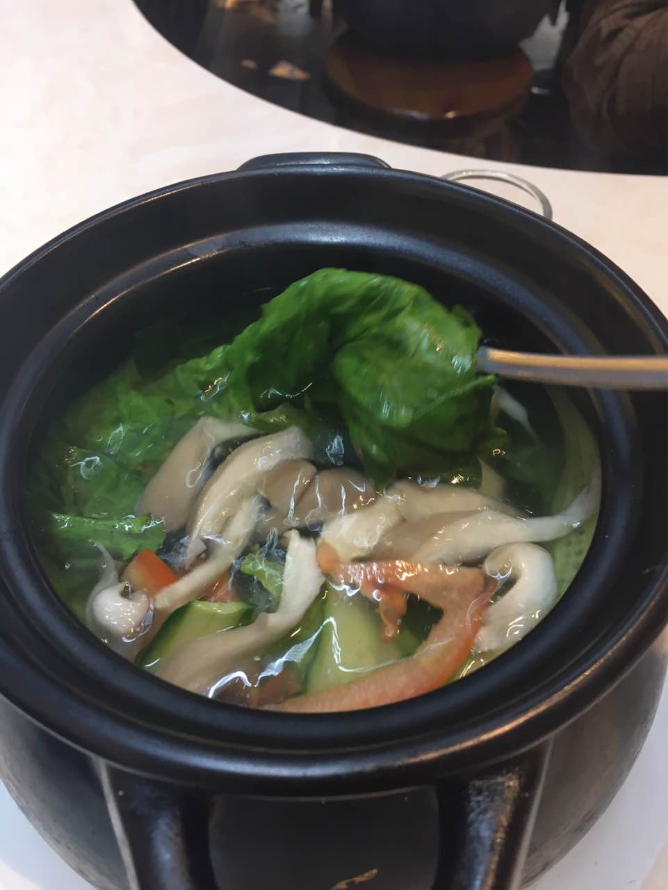 干锅味道不错,兔头也好吃,点了个蔬菜汤,点完才发现饭汤水果自助,服务员也没说