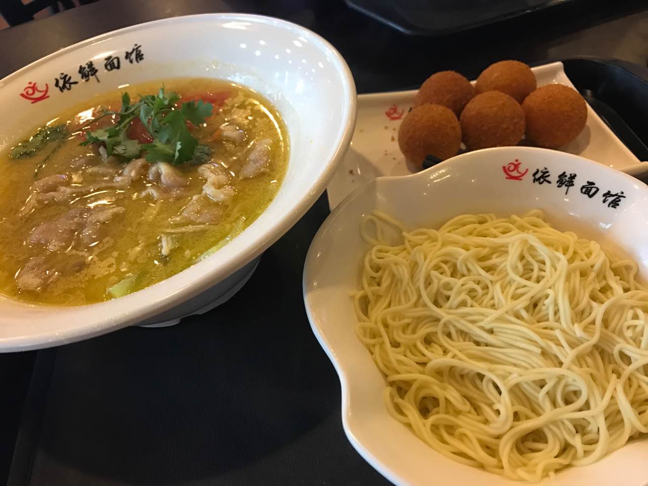 今天套餐很实惠,菌菇酸汤肥牛面真心不错,稀饭稀饭,地瓜丸也不错,外酥里嫩,好吃