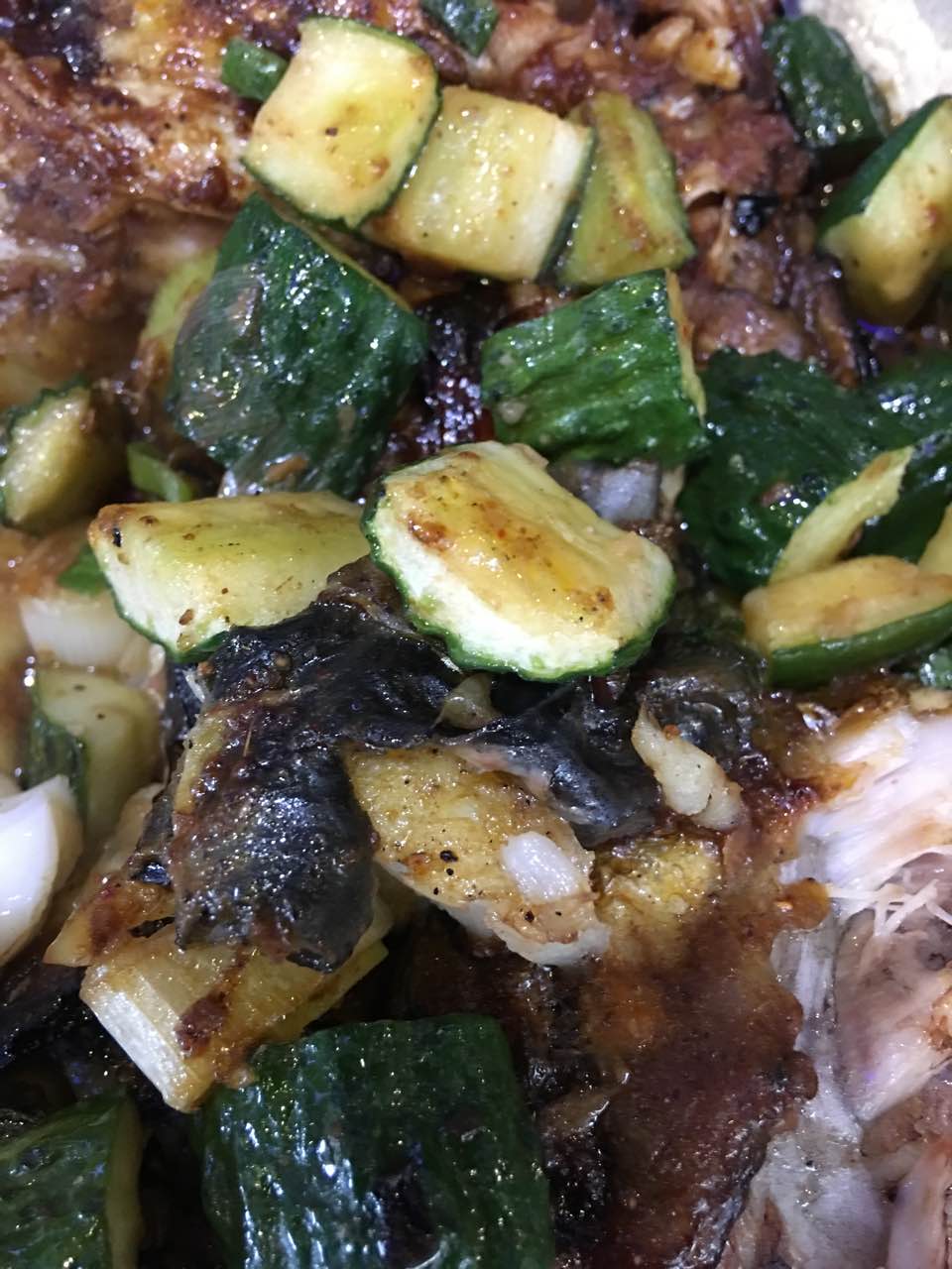 鱼肉还行,油豆皮难吃,酱香口味上面的黄瓜都是蔫的,酱香味不浓。一般吧!黄瓜都干了!
