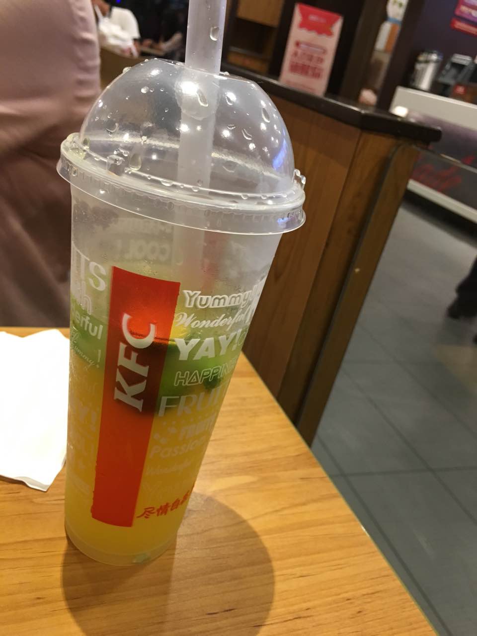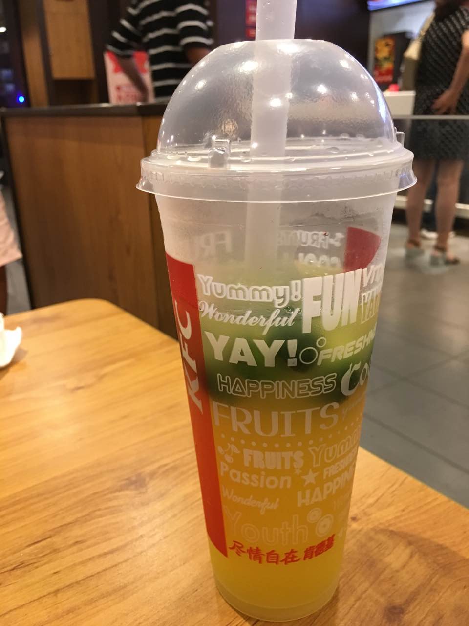 非常不开心的一次消费,一点都不好喝。全是桔子核子,没办法,这点只有这个饮品,哎,下雨了,为了躲雨才来的。