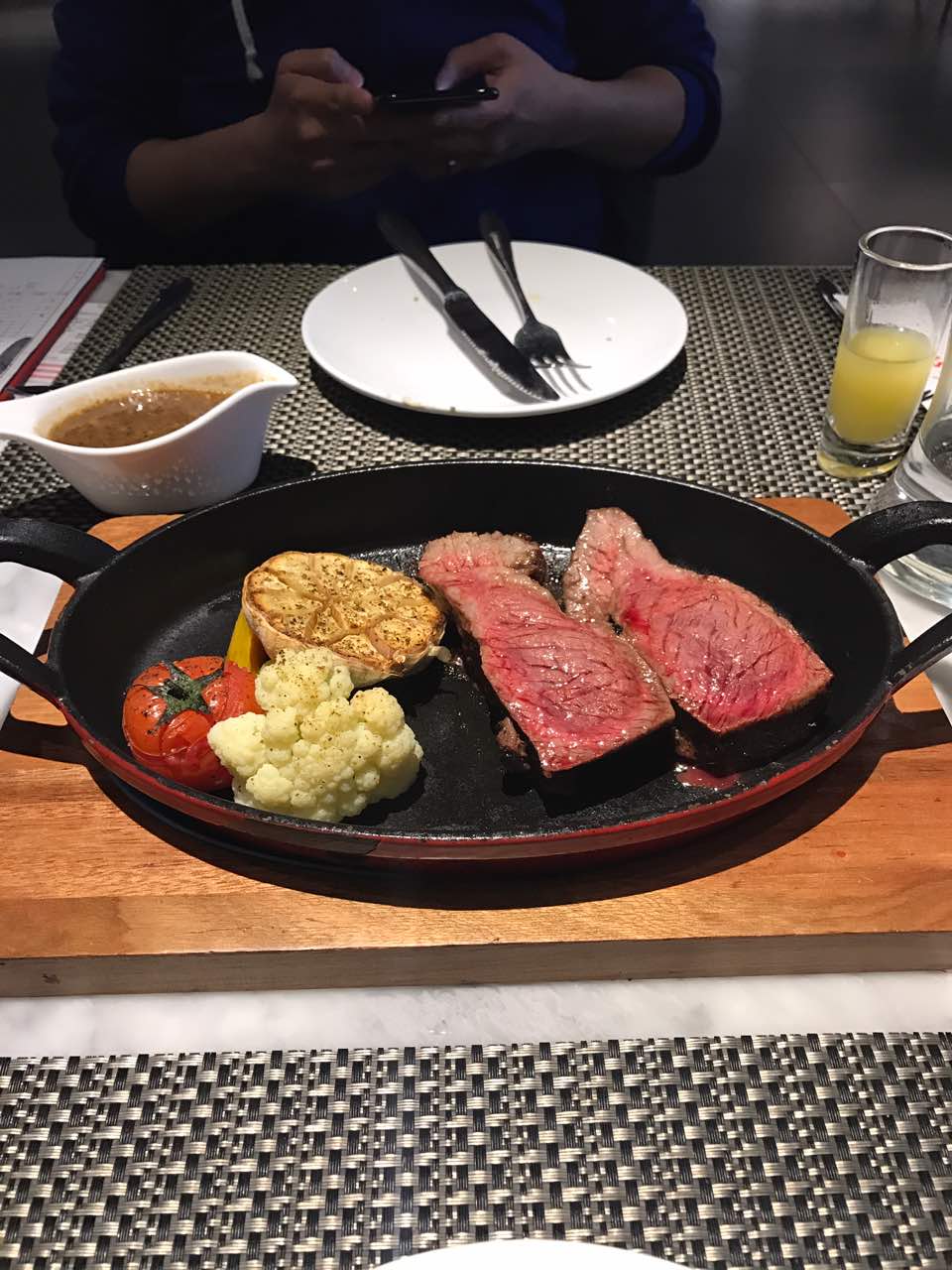 老公选的五分熟,他很喜欢吃,口感很好。我看着血呼呼不太敢吃,沙拉和汤很好吃