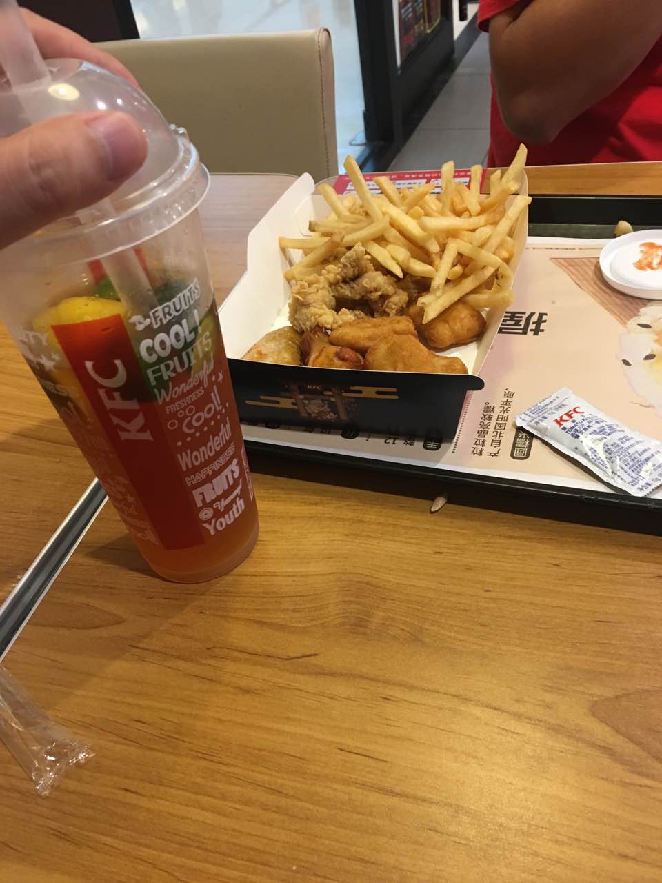 小吃拼盘,加土豆泥,取餐很快,周末人比较多,饮品跟外面奶茶店差不多,还不错。。。
