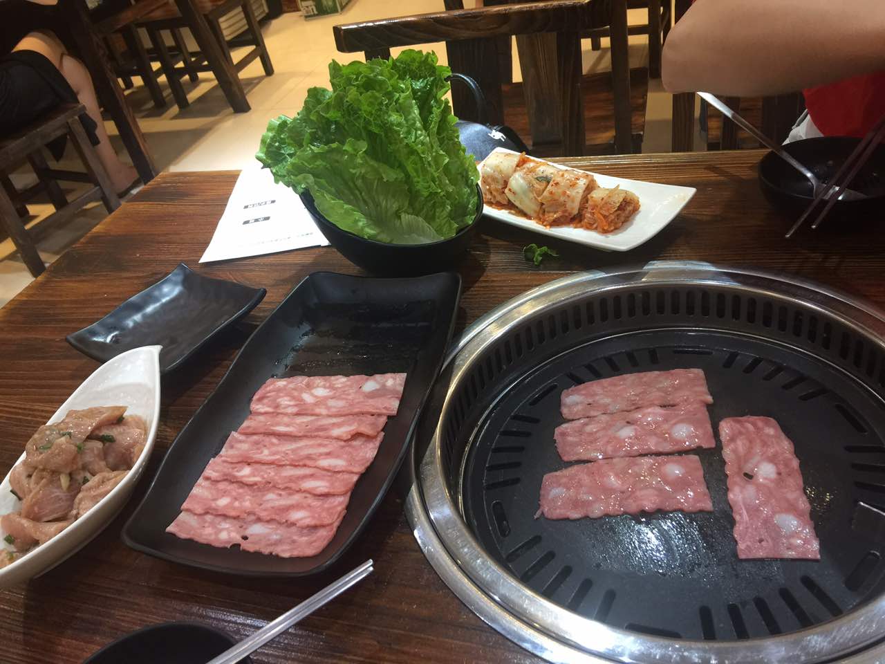 好吃。秘制的烧烤肉很好吃,泡菜也每次必点。开了好久了,推荐下,