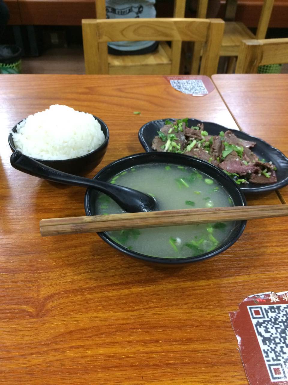驴肉很碎很好吃,没有腥味,配的青菜分量足,现在天天吃。