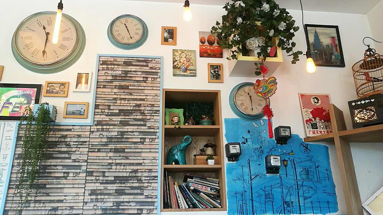 格调满满的,人不多,有好多书,以及怀旧东西。樱桃芝士好吃!