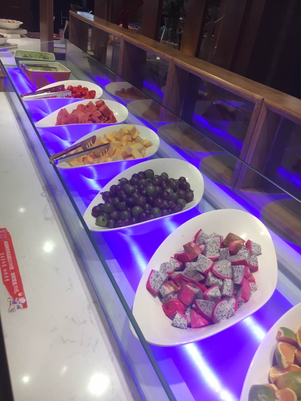 就拍了两张照片,东西挺全的,我主要冲牛排来的,水果很新鲜很好,大家可以来吃吃,总体来说很不错,值得来