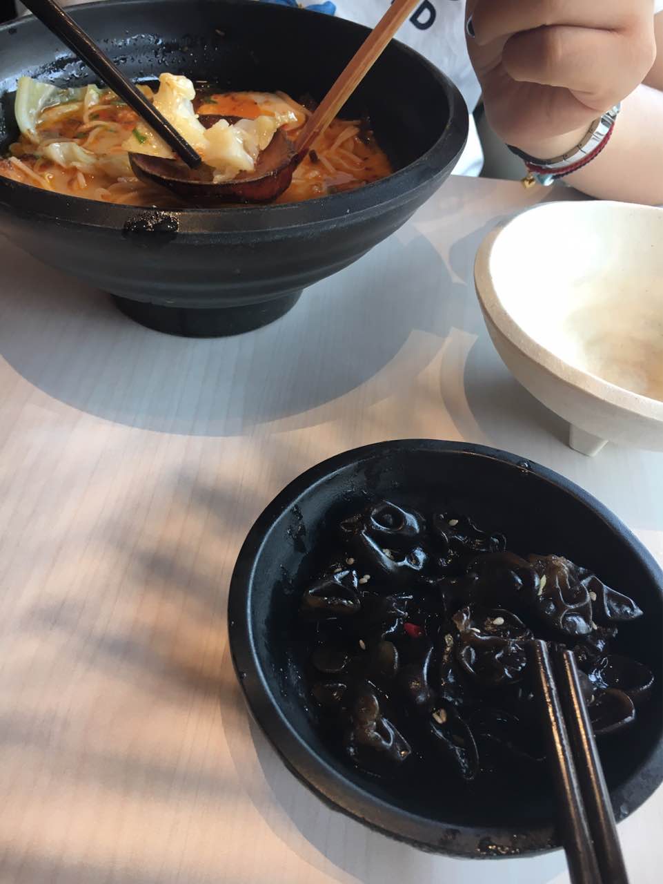 点了酸酸辣辣面和牛肉饭及猪扒,看着量不多,但是吃到撑哈哈哈,口味还不错