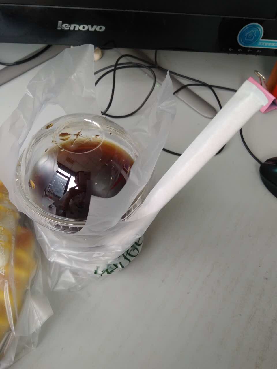 买了冰咖啡和毛毛虫,就是没给吸管,给了个木棍怎么喝,搅着喝,不开心