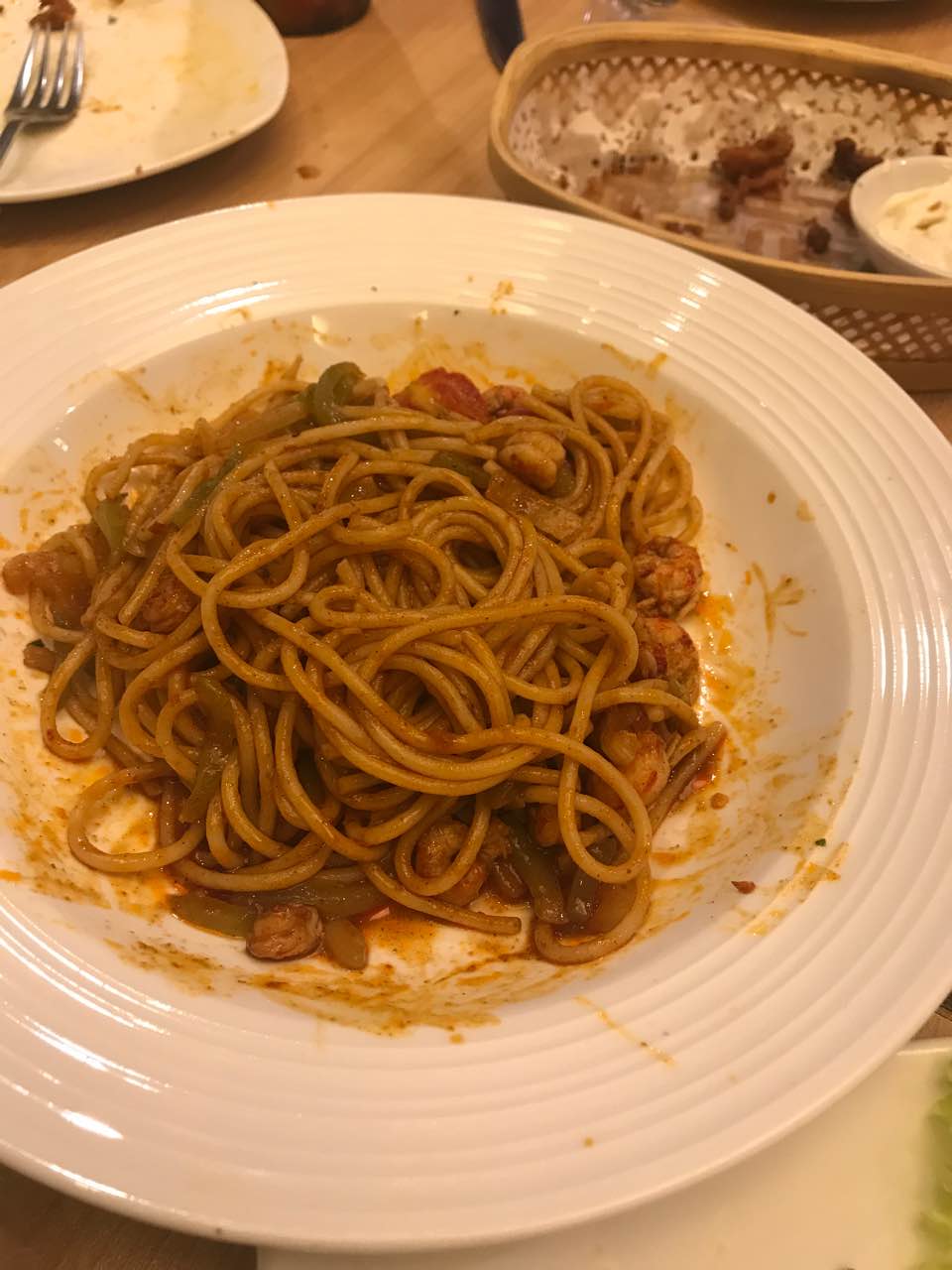 小龙虾的披萨和意面有点新鲜有点创意有一点点好吃