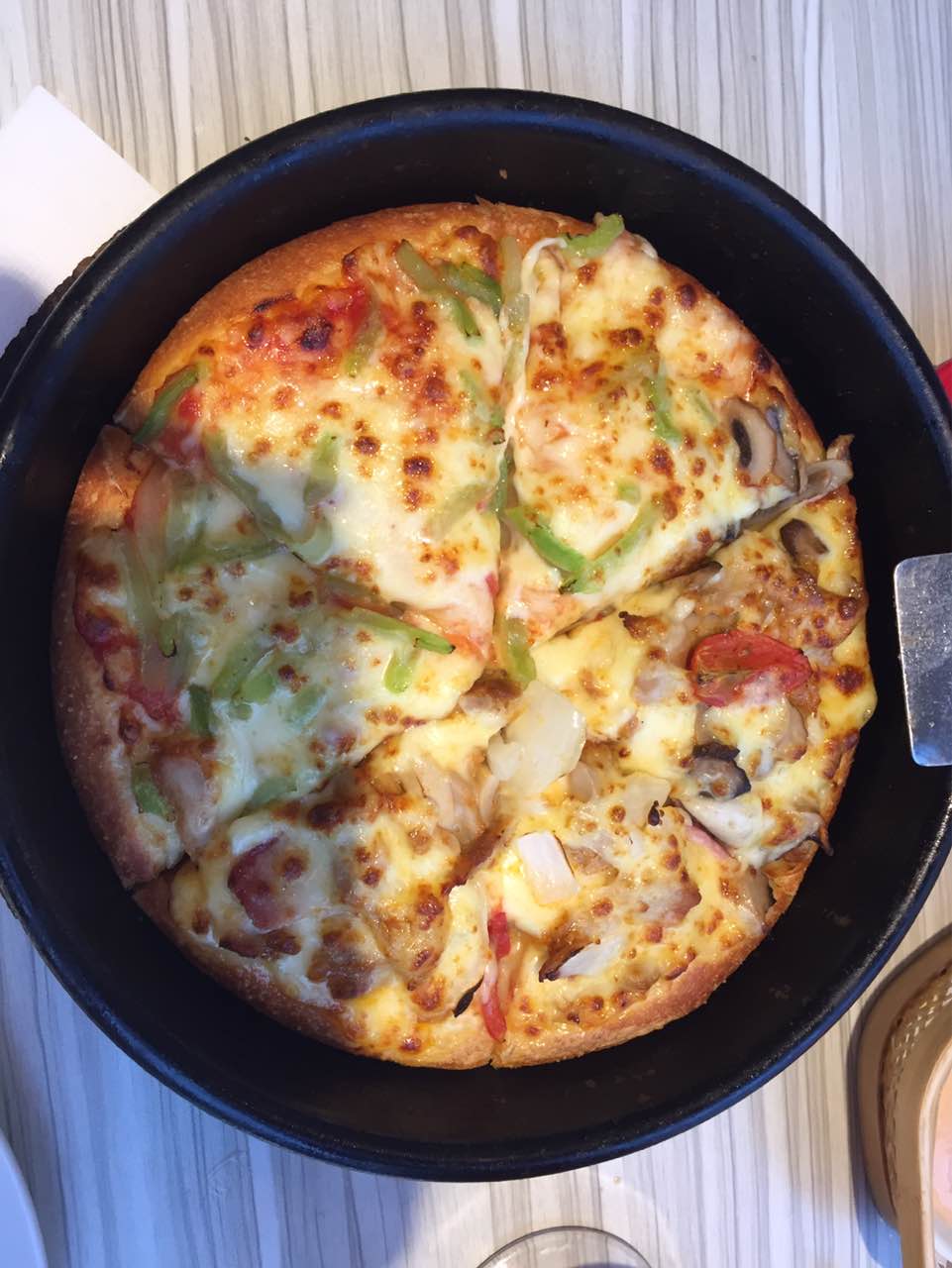 来过好几次,点了双人餐都没吃完,^_^,新品小龙虾披萨可以试试,味道还可以