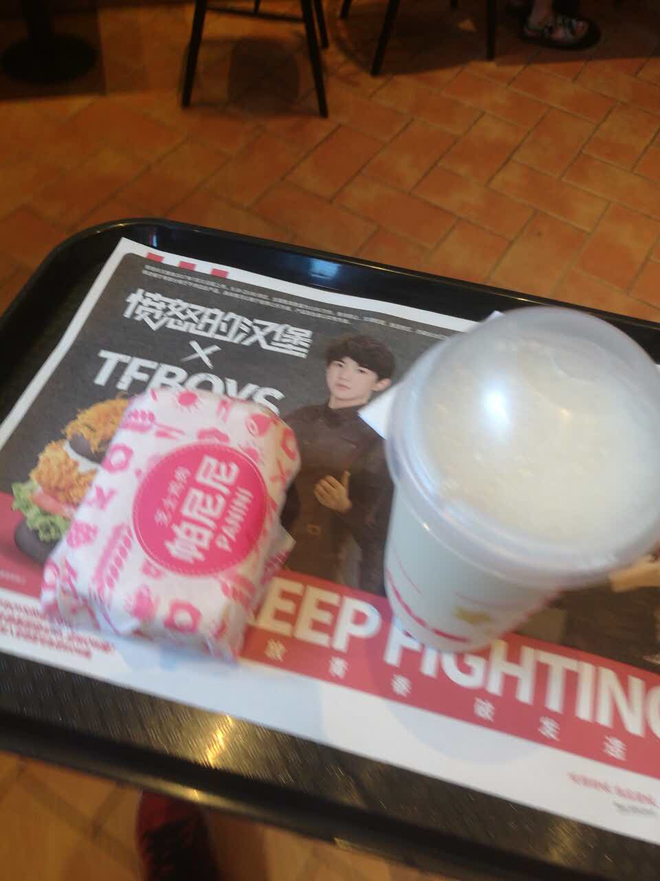早餐来吃一手汉堡加上冰豆浆 恩 很舒服 这么说你们懂了吧
