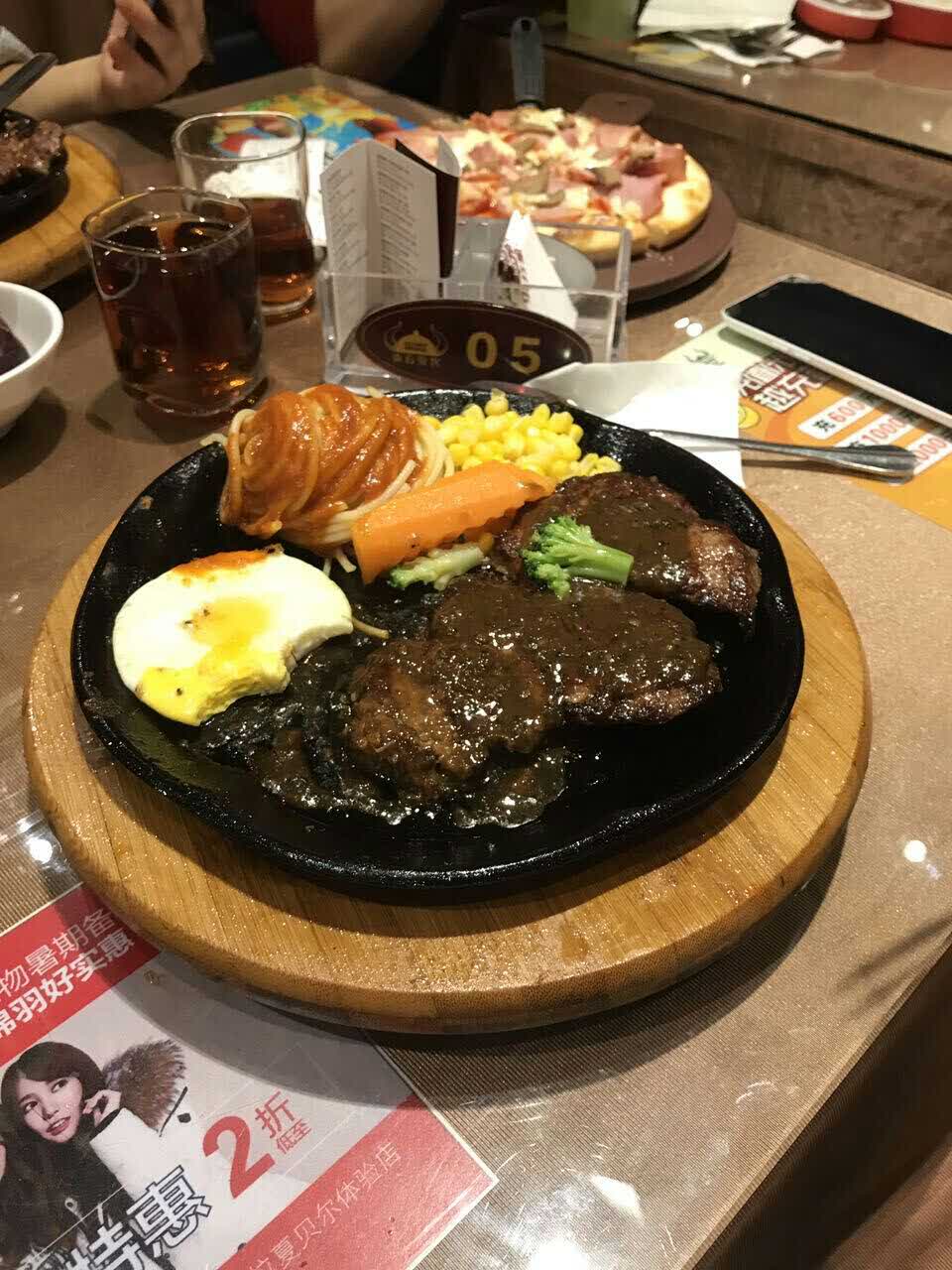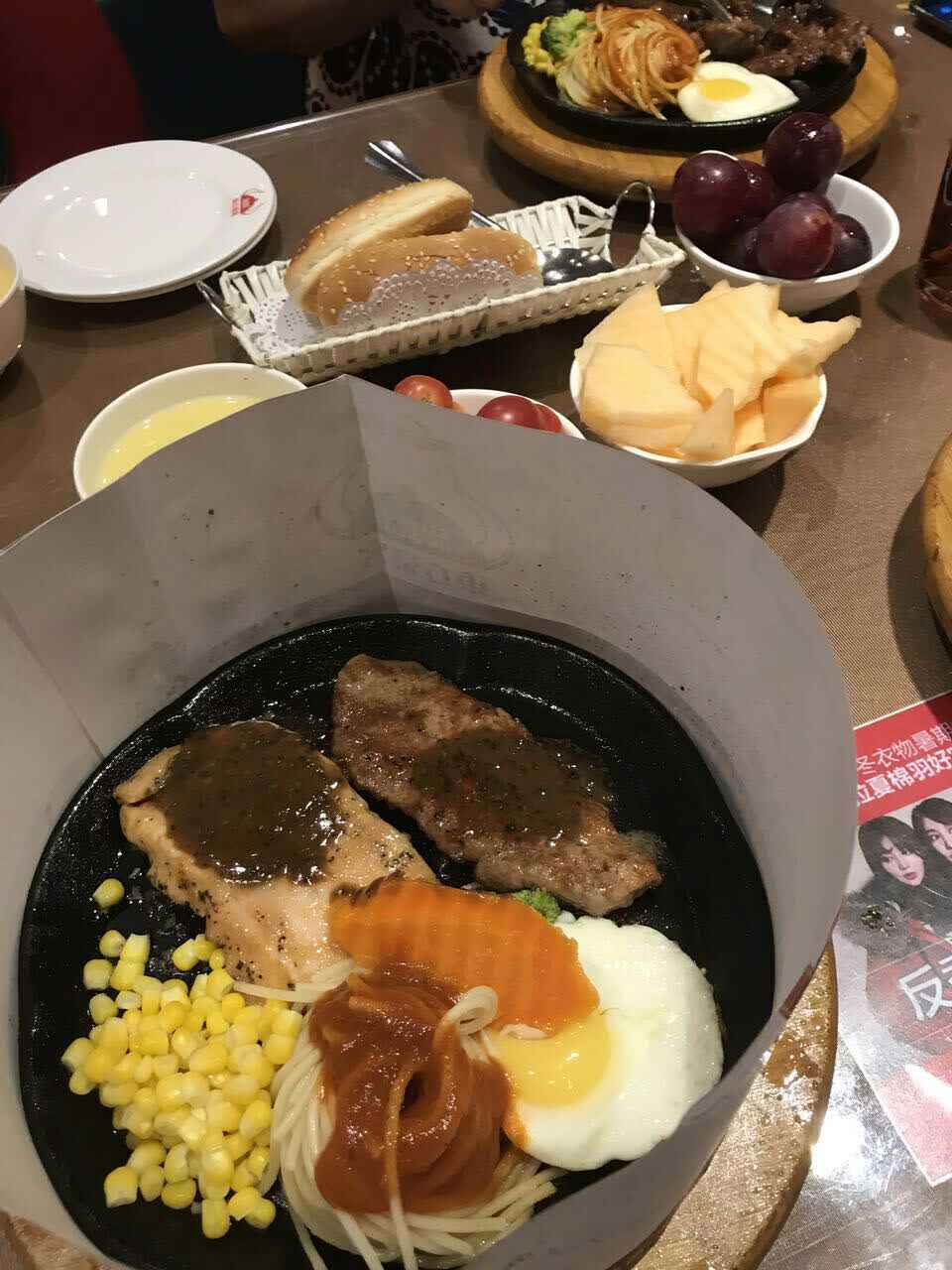 味道很好 每次孩子放假都会来吃一次 牛排种类很多 很丰富 肉质也很嫩 选择的余地很大 披萨也有...味道很好 每次孩子放假都会来吃一次 牛排种类很多 很丰富 肉质也很嫩 选择的余地很大 披萨也有很多花样 我最喜欢羊肉龙虾的 很新鲜 小吃的种类也多种多样 还可以自助吃水果 非常棒