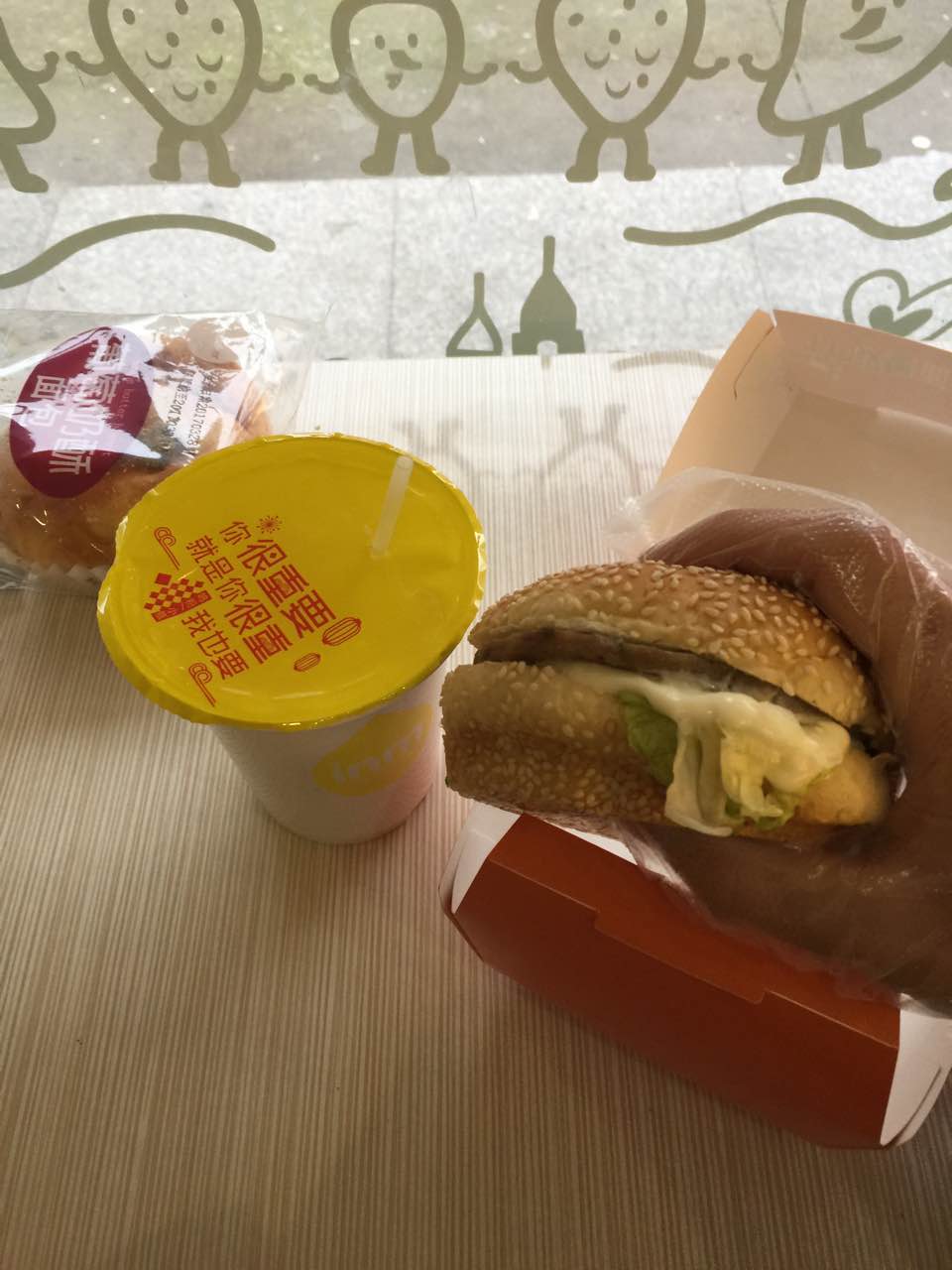 居然还有汉堡,哈哈哈,味道也还不错,第一次发现来一鸣吃早餐的人还挺多的!