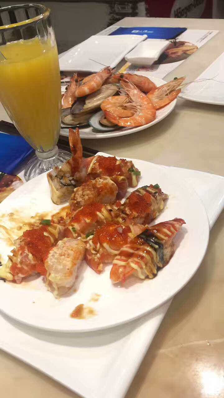 寿司非常好吃,还有鹅肝很不错。铁板胡椒椒盐虾也很不错,羊排很赞