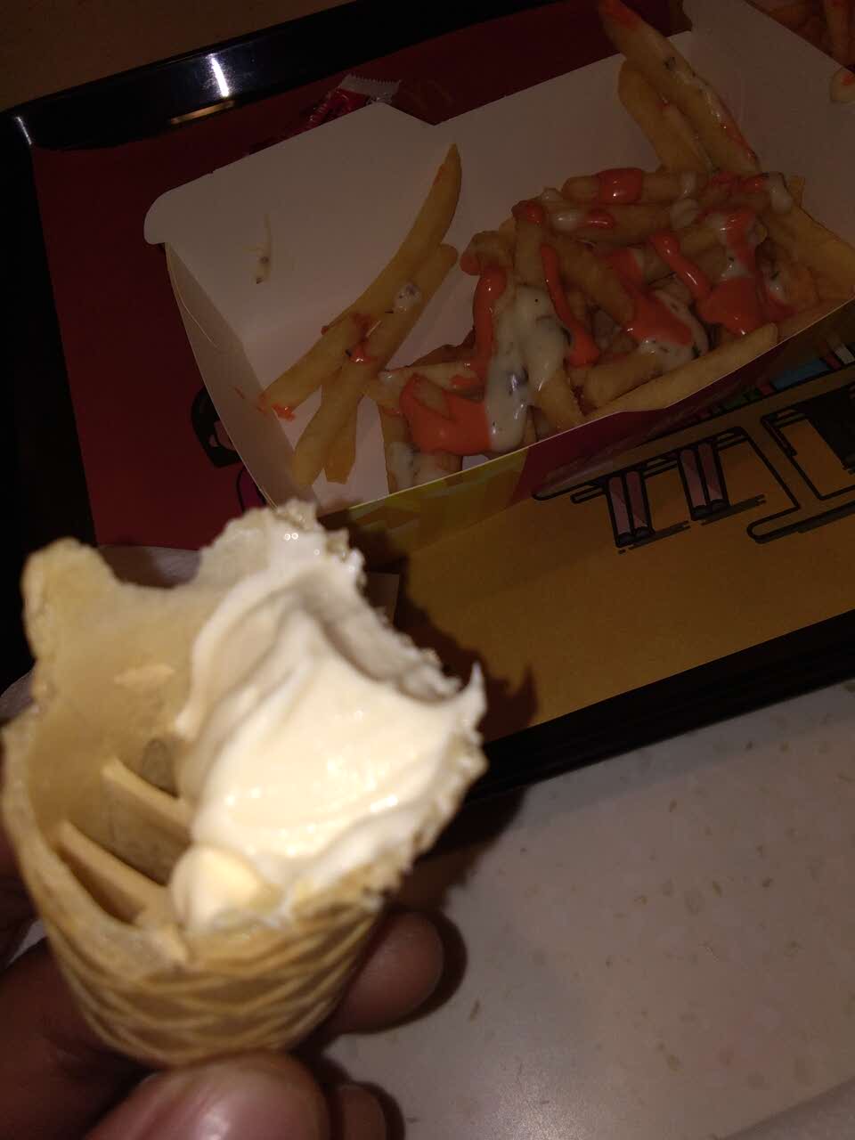 环境不错,就是薯条太难吃了,确切地说就是酱太难吃了老婆很生气。