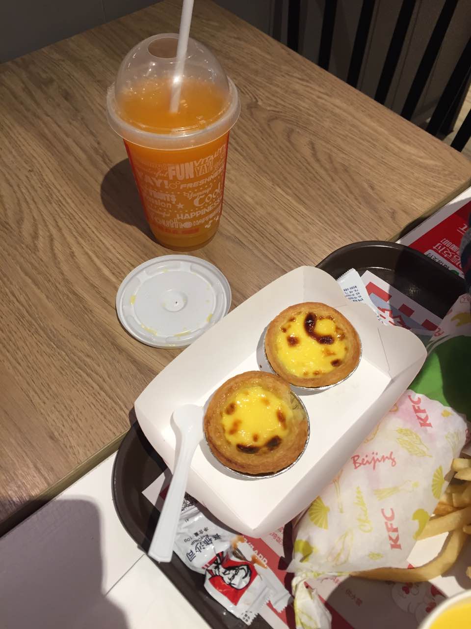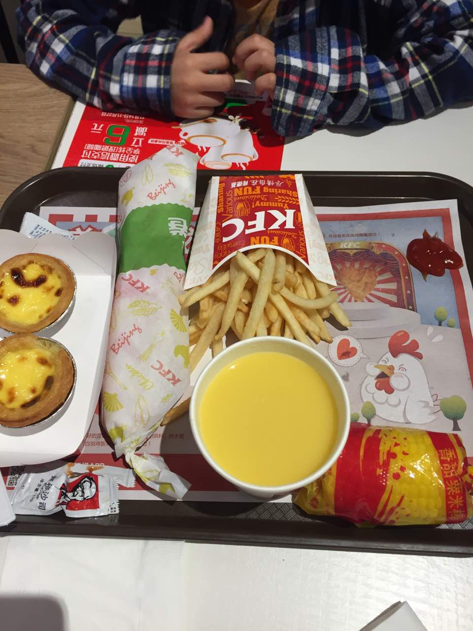 周末人多,新品玉米汁不错,只是这玉米棒什么情况,水很多;蛋挞第二个半价还是很合算的