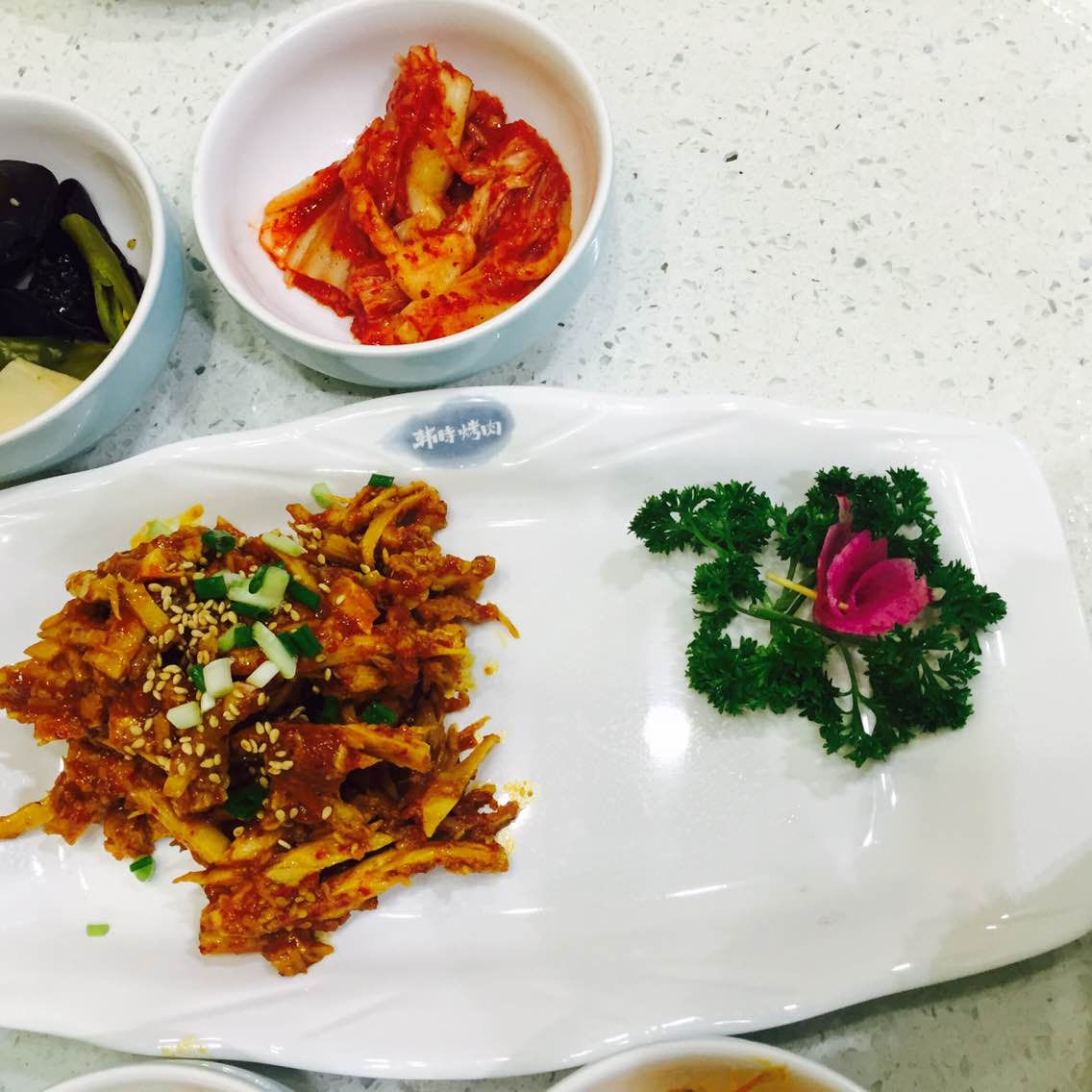 口味很棒,烤牛舌和五花肉嫩,入味,金枪鱼泡菜炒饭真的有金枪鱼,哈哈哈,还是大块,至少不像其它家是肉末口味很棒,烤牛舌和五花肉嫩,入味,金枪鱼泡菜炒饭真的有金枪鱼,哈哈哈,还是大块,至少不像其它家是肉末,略微有点咸,不过整体还好,还是爱吃烤蒜,还会来的