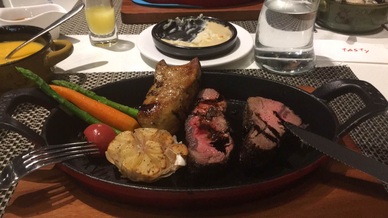 网友2017-06-30鹅肝牛排很好吃,有个海鲜汤也好的跟,赠送的面包也好吃,总之都好吃,真是太好吃了,牛排量很大,真...鹅肝牛排很好吃,有个海鲜汤也好的跟,赠送的面包也好吃,总之都好吃,真是太好吃了,牛排量很大,真么热的天气,下次两个人点一份,再吃点免费面包我看就够了,