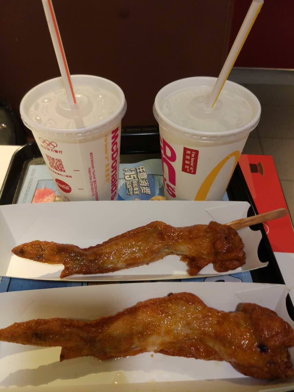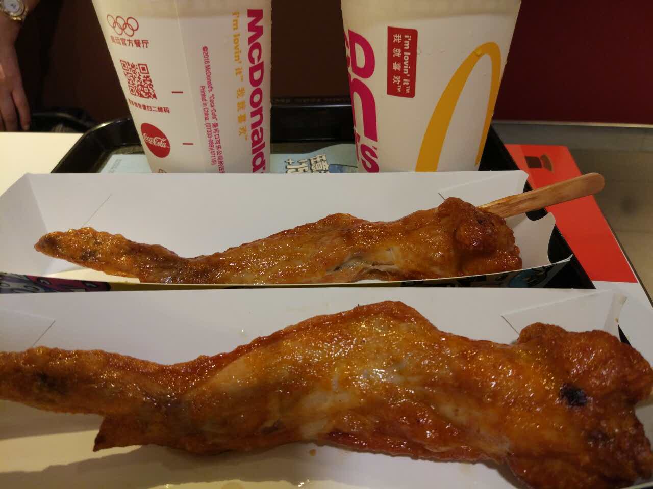 今晚在徐家汇逛街,晚上和女儿觉得有点饿了,就是麦当劳解解馋,买了这个大鸡翅,配上冰凉雪碧,好爽啊!