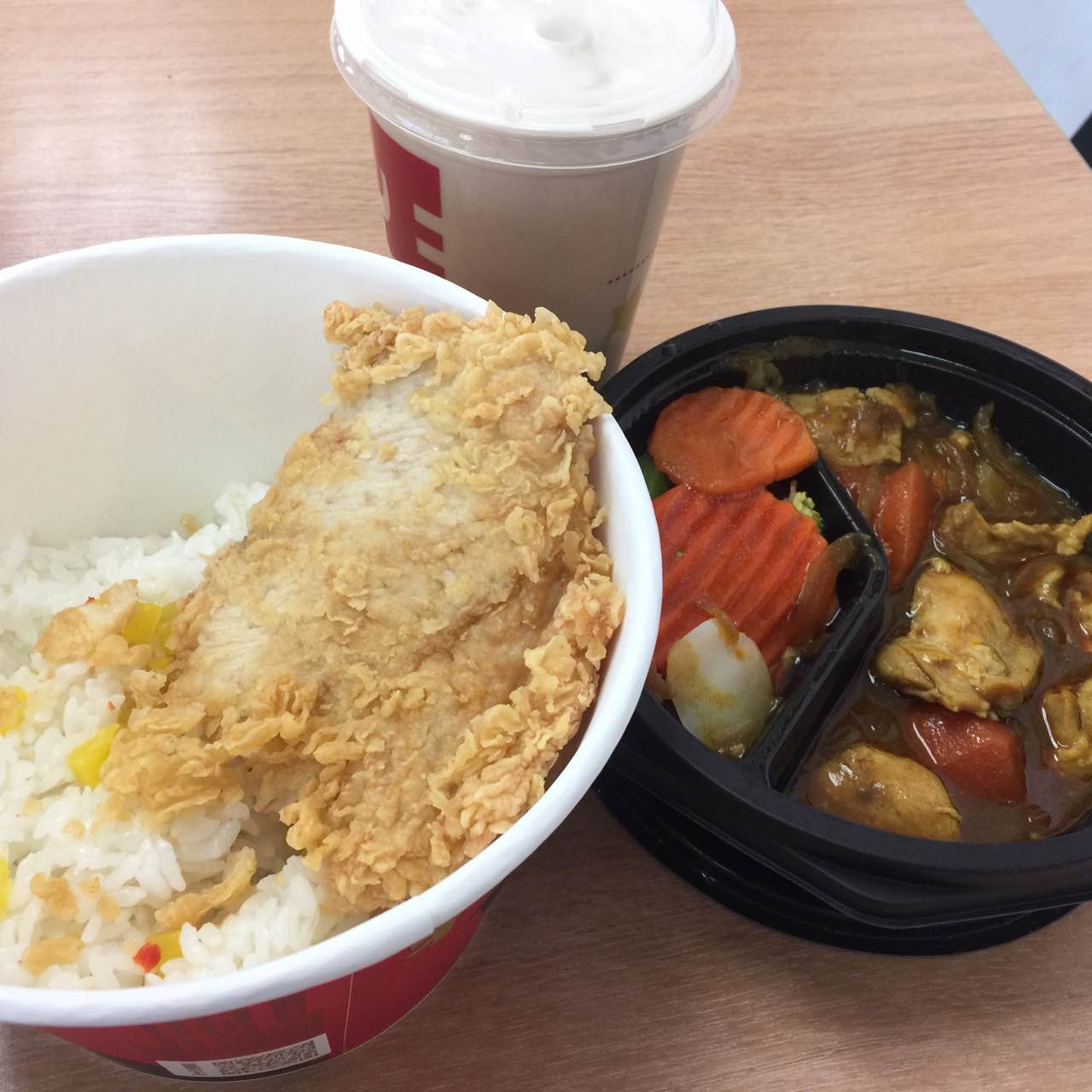 点餐人员都转不过来了,第一次吃咖喱饭,比想象中好太多了,大鸡排的味道也不错,椒麻的,可惜没有吃...中午实在是人太多了,点餐人员都转不过来了,第一次吃咖喱饭,比想象中好太多了,大鸡排的味道也不错,椒麻的,可惜没有吃到猪肉卷,如此午餐,足以。