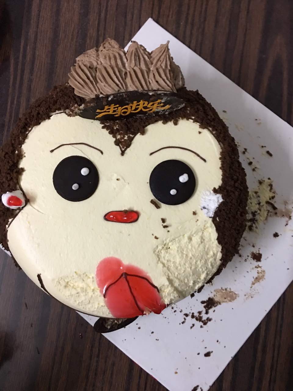 网友2017-04-23小猴子蛋糕很好吃,虽然有一点小,但是我们四个人已经足够了……大宝的每年生日蛋糕也都在皇冠里面订...昨天是小宝满一百天,大宝也跟着一起过生日,都玩得挺happy的,小猴子蛋糕很好吃,虽然有一点小,但是我们四个人已经足够了……大宝的每年生日蛋糕也都在皇冠里面订购的,味道很棒