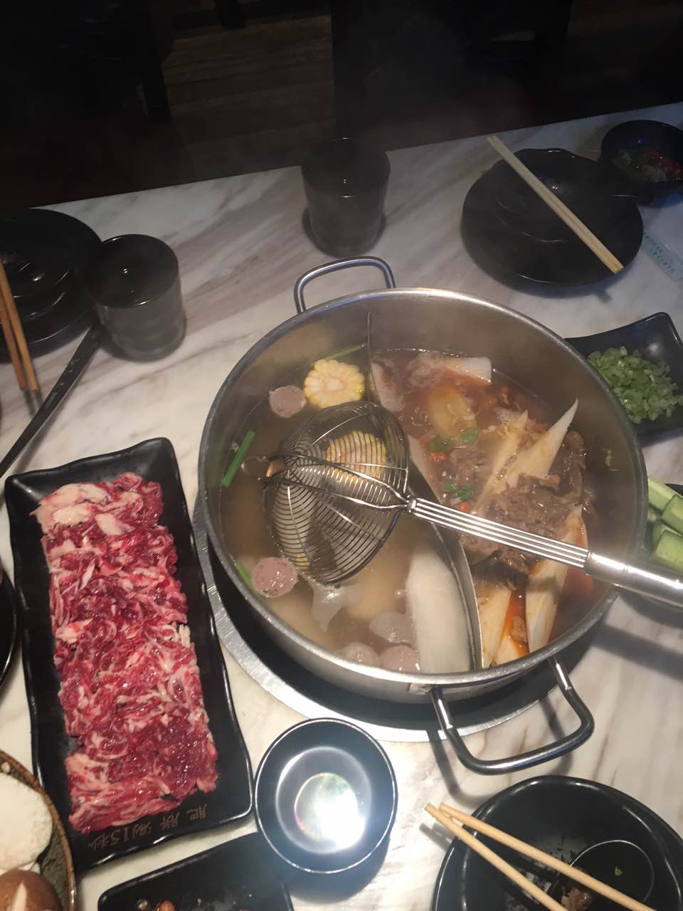 ...烂的,里面的萝卜很好吃,炖得肉味,牛肉饼没有想象中好吃,牛筋丸牛肉丸很实在,可惜没有吃完浪费了中了128的优惠卷去的,点的牛腩鸳鸯锅,牛腩炖的挺烂的,里面的萝卜很好吃,炖得肉味,牛肉饼没有想象中好吃,牛筋丸牛肉丸很实在,可惜没有吃完浪费了