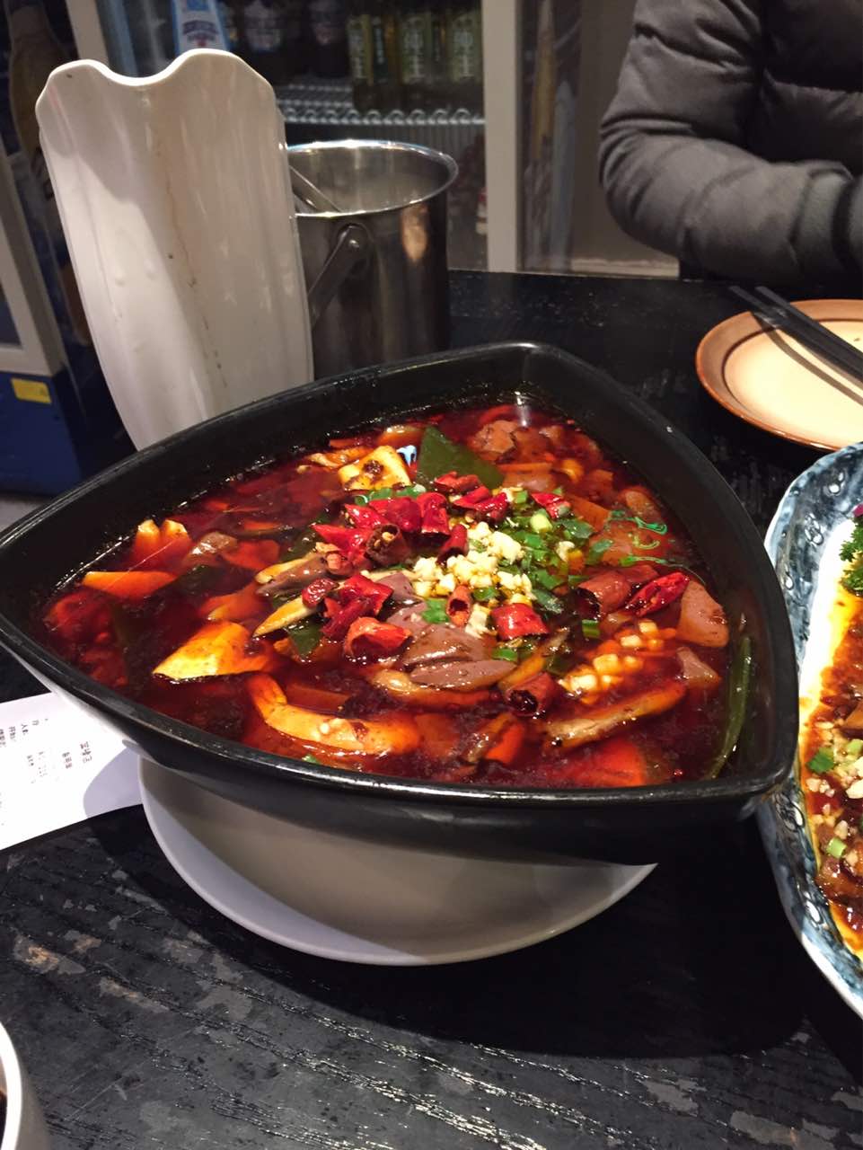 毛血旺的虾是臭的 没有万达店的新鲜 其他的还可以 没有红旗街万达店好吃 因为离得近就来这了