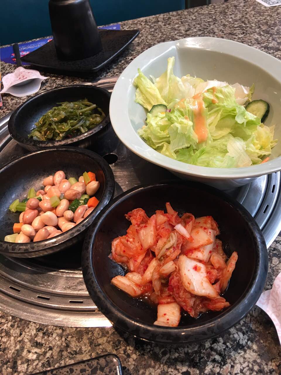 点个石锅拌饭28元,配菜丰富,还送西瓜,超值。