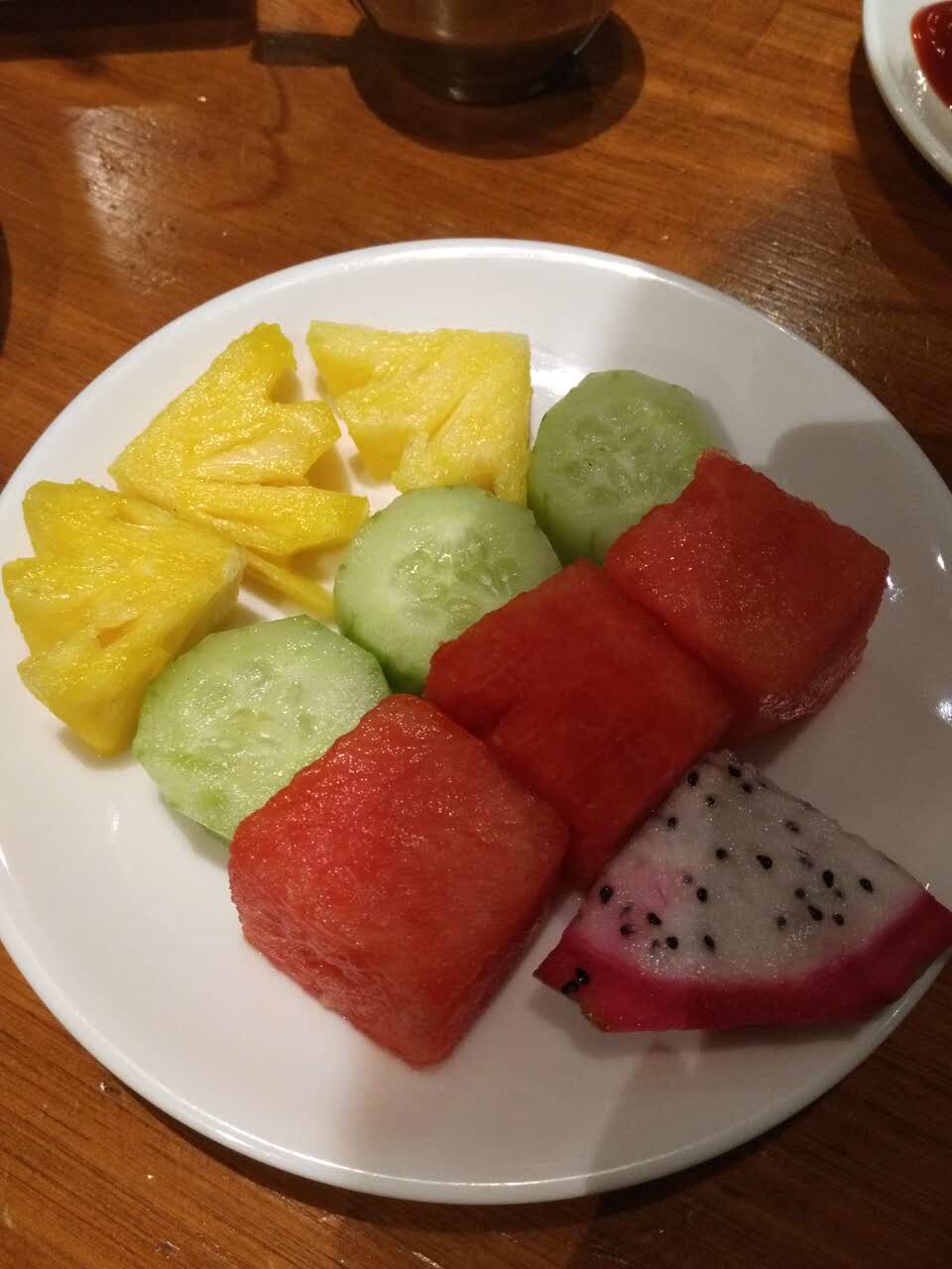 好评。T骨牛排好吃。寿司冷的不好吃,薯条冷的不好吃,菠萝好吃,西瓜好吃。咖啡☕好苦